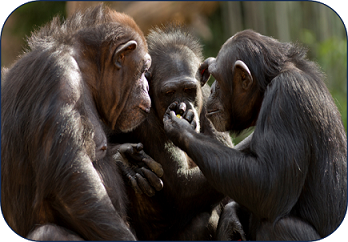 Wir Menschen sind soziale Wesen. Wir haben ein Bedürfnis nach sozialer Nähe, dem freudigen Miteinander und dem Austausch. Das finden wir auch bei den Tieren. Vor allem bei den hoch entwickelten Tieren, den Primaten, den Affen – wenn sie sich gegenseitig lausen oder, wie in diesem Bild, wenn wir den Eindruck haben: Die Affen diskutieren ja um eine Sache, als seien es Menschen.